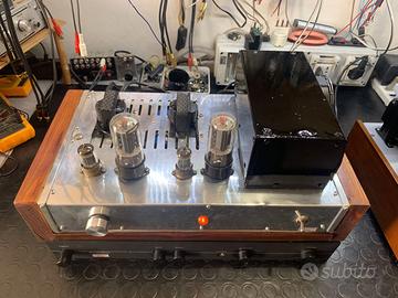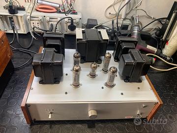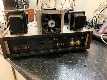 L'altro un single ended parallelo composto da due el 84 per canale in parallelo e una ecc 81 . piu' potente dell'altro circa 10w per canale . anche questo nessun rumore di fondo . Possibilità di ascoltarlo anche a potenza ridotta tramite interruttore ( funzione nata come pre riscaldo in quanto abbassa la tensione anodica) . Entrambe hanno una silenziosissima ( impercettibile) ventola di raffreddamento onde non avere problemi sui lunghi ascolti anche in periodi di temperature elevate.