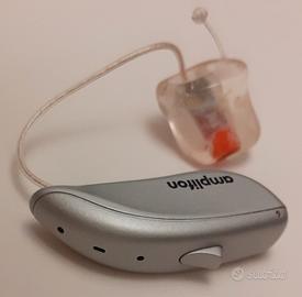 Amplifon apparecchio acustico destro ricaricabile Ampli-Energy R3, acquistato a fine settembre 2022 con dimostrabile fattura di €.3.000,00, usato pochissimo in condizioni praticamente nuove. Completo di imballi, kit manutenzione, istruzioni d'uso, base di ricarica, è dotato inoltre di Streamer audio per consentirne collegamenti audio da altre fonti, ad esempio TV, rendendone ottimo l'ascolto senza recare disturbi ad altri.