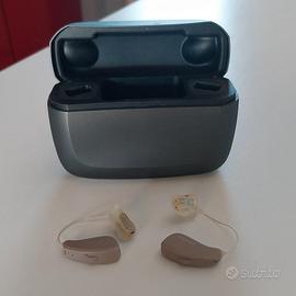 Due auricolari Ampli-Energy R 3 (apparecchio acustico retroauricolare con un ricevitore discreto) REC TUBE, SF LP REC, 3L - REC TUBE, SF LP REC,3R, comprensivi di scatola originale e di charger (custodia di ricarica).