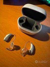 Set di apparecchi acustici Phonak marchiati Amplifon. Il prodotto è di ultima generazione, totalmente programmabili via bluethoot nei negozi autorizzati Amplifon e non, ricaricabili attraverso l'apposita custodia provvista di cavo usb. Erano di mio padre che li aveva comprati un paio di anni orsono, usati pochissimo ed ora in svendita per lutto familiare. Il prodotto in questione NUOVO si aggira intorno ai 4000€ - per veloce realizzazzione 2500€ assolutamente trattabili. Gli apparecchi adesso sono testabili a Roma in zona Navigatori.