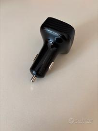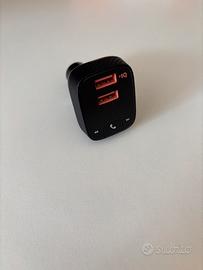 Trasmettitore wirless per auto. Indicato per tutte le auto che non dispongono di connessione usb o bluethooth per collegare uno smartphone. Alimentato tramite presa accendisigari 12V, permette di riprodurre musica ed effettuare chiamate telefoniche sull’impianto stereo dell’auto collegandosi via bluethooth allo smartphone e via radio (configurando la stessa frequenza radio in ascolto dello stereo) alla macchina. Microfono integrato. 2 prese usb A di cui una a ricarica rapida. Con scatola originale e manuali d’istruzione. Pari al nuovo.