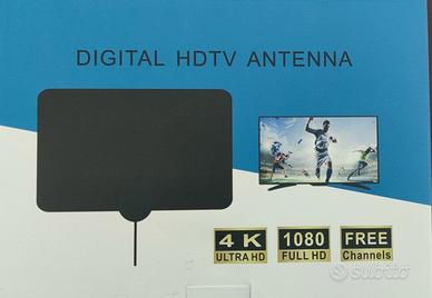 Vendo antenna da interno nuova, acquistata per provare la copertura televisiva in un immobile senza impianto. perfettamente funzionante, il cavo di 5Mt permette di posizionarla lontano dal televisore per massimizzare la ricezione. Tutte le specifiche tecniche sono nell'ultima foto