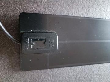 Materiale plastico flessibile , misura 67 * 7 cm completa di cavo coassiale lungo quattro metri e mezzo +connettore d'antenna , incollabile.
