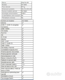 Vendesi antenna digitale terrestre da interno Full HD ONE FOR ALL modello SV 9345