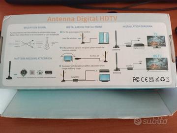 antenna digitale 4k/ultrahd da interno. ottima per potenziare i segnali TV dove arrivano disturbati. Utilizzabile anche su camper e simili. È composta da base magnetica,cavo con spinotto RF e USB per alimentazione, e selettore per bassa e alta portata di segnale.