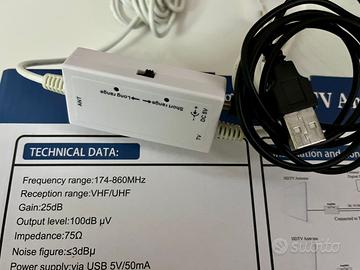 Antenna HDTV DVBT DVBT2 Digitale Terrestre da interno AMPLIFICATA alimentazione via USB