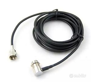 Specifiche cavo coassiale: 5 metri RG-58 con intestato PL259 maschio e dall'altro lato un connettore SO-239 con ghiera per fissaggio al supporto antenna o a altro supporto.