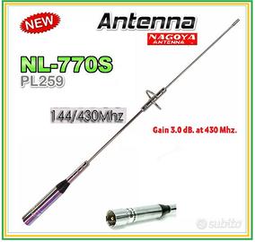 Antenna VHF-UHF Nagoya NL-770s + con 5 metri cavo coassiale con connettori + supporto antenna Nagoya RB-400 per auto non necessita di forare la carrozzeria. Colore argento o nero (chiedere quale si preferisce). Tutto nuovo nella confezione originale.