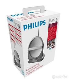 Antenna Philips. Riceve il segnale TV e radio, analogico e digitale, antenna amplificata a 38 dB UHF/VHF/FM. L'amplificazione a 38 dB consente di intensificare i segnali deboli, ampliando il raggio della ricezione e assicurando un maggior numero di segnali provenienti da distanze maggiori.