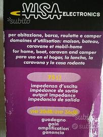 Per abitazione, barca, camper. Funziona con batterie LR03 AAA 1,5v (non incluse) Presa di alimentazione 12v (alim. DC o batteria auto) Guadagno vhf 20db/uhf 36db Impedenza uscita 75 ohm