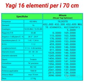 vendo antenna direttiva per radioamatori per la banda dei 70 centimetri (432MHz) prodotta da I0JXX. se qualcuno fosse interessato la recupero dalla soffitta e gli faccio delle foto, non è mai stata montata fissa, l'ho utilizzata in qualche attività in portatile. il modello è 16JXX70 ovvero 16 elementi. disponibile solo per consegna a mano in zona Orio al Serio.