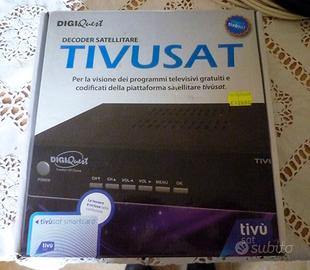 VENDO ANTENNA SATELLITARE CON IL TREPPIEDE E DECODER SATELLITARE TIVUSAT DIGIQUEST PER UTILIZZO NEI PERIODI DI VACANZA. TUTTO FACILMENTE TRASPORTABILE. COMPLETA DI LNB (ILLUMINATORE NUOVO),BUSSOLA IGROSCOPICA E SAT FINDER PER LA RICERCA DEL SEGNALE E CAVI COASSIALI E SCART. LA SCHEDA TIVISAT VA RINNOVATA CON UNA PIU' ATTUALE IN QUANTO HANNO CRIPTATO IL SEGNALE PROVENIENTE DAL SATELLITE HOTBIRD. PREZZO DEBOLMENTE TRATTABILE. EVENTUALE SPESA DI SPEDIZIONE 25 EURO, TELEFONARE ORE PASTI.