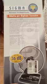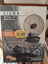 Antenna TV amplificata marca COBRA modello Sigma, idonea per digitale terrestre, ideale per camper, roulotte, casa vacanze, ecc. Comprata nuova da Mediaworld e utilizzata pochissimo, è ancora presente il suo imballo originale, con le relative istruzioni. Vendo al prezzo di 7 euro