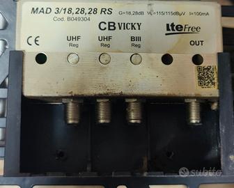 antenna tv banda larga della Fracarro completa di amplificatore da palo. Priva di confezione