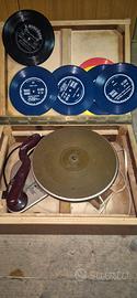 antico giradischi 45 giri con braccio in legno e scatola in legno