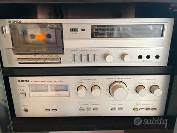 Sistema radio FM Hi-Fi STEREO/FM-AM TUNER TT350 Telefunken, Giradischi In Tensai TD535D 45 giri e 33 giri, Stereo Cassette Deck TFL816M In Tensai Dolby System, Stereo Amplifier TA-2160 In Tensai, Casse acustiche di varie dimensioni e potenza, cavetteria varia per i collegamenti tra le apparecchiature, libretti istruzioni originali riguardanti il mangiacassette ed il giradischi (non in foto poichè il sistema me lo impedisce). Tutto ancora funzionante. Vendo tutto il blocco comprensivo del mobiletto. Attrezzatura vintage tenuta bene. Inoltre regalo altre due casse. Prezzo trattabile.