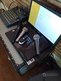 Vendo tutta completa apparecchiatura per karaoke compreso di computer mixer mouse asta per microfono, e 2 casse montarbo, 3 microfoni e relativi cavi montaggio , tutto completamente funzionante , nel computer che è compreso nel prezzo c'è installato già un programma per karaoke con 15 mila brani già inseriti e a disposizione, trattabile ritiro in loco,