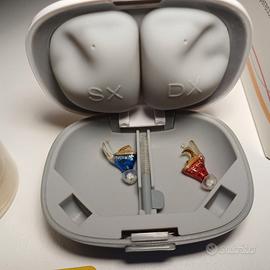 Apparecchio acustico Amplifon, di dimensioni ridotte, molto leggeri, confortevoli e pratici da indossare. Quando indossati, sono invisibili. Acquistati nel 2021 ma usati pochissimo. ottime condizioni, perfettamente funzionanti, venduti completi di accessori.