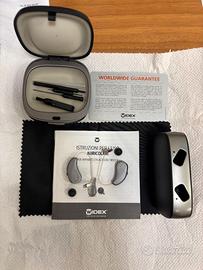 Apparecchio acustico Marca Widex modello WIDEX MOMENT MRRAD 220. Apparecchio acquistato nel 2023 in ottimo stato. Chiarmaente la parte importante è quella grossa (il computer) ricevitore e tubicino possono essere sostituiti all'evenienza. Apparecchio acustico ricaricabile impermeabile di fascia media. Completo di scatola, custodia , kit pulizia, caricatore a induzione. Compatibile con Apple e Android per streaming direttamente dal telefono. Parliamo di un apprecchio dal costo di oltre 2500 euro. Può essere portato in un centro autorizzato per la ricalibrazione e la personalizzazione pagando circa 400 euro. Usati poco e perefettamente funzionaanti