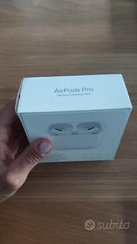 Airpods Apple Pro di seconda generazione con funzione di annullamento rumore esterno e Mag safe di ricarica Confezione sigillata e mai aperta come si evince dalla linguetta di sicurezza visibile nella foto allegata