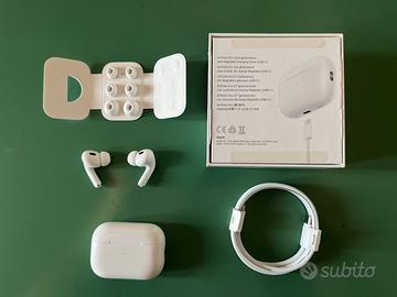 Vendo Apple AirPods Pro 2 originali per passaggio a generazione successiva. Cuffie perfettamente funzionanti e con tutti gli accessori originali presenti nella confezione al momento dell’acquisto.