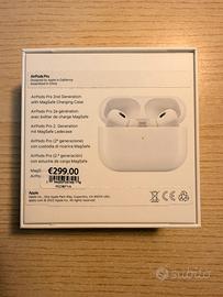 Vendo Apple AirPods Pro (2nd generation) in quanto mi hanno regalato la nuova versione. Utilizzate saltuariamente durante i viaggi in treno e in aereo, comodissime per la cancellazione del rumore. Prodotto originale, comprate direttamente in Apple Store (come da etichetta sul retro). Complete di scatola e accessori, tra cui il cavetto mai usato in quanto utilizzavo quello di iPhone. Condizioni ottime: sempre utilizzate con la cover di protezione perciò il case esterno non ha graffi. Per questo il prezzo non è particolarmente trattabile. Preferito scambio a mano.