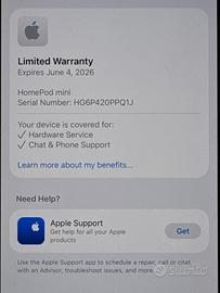 Vendo HomePod mini in condizioni perfette, usato pochissimo. Prodotto ancora in garanzia Apple come in foto. Vendo completo di scatola.