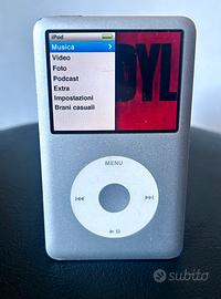 iPod Classic da 160GB, modello A1238 ultima versione di fine 2009 (più sottile del precedente), colore argento, funzionante. L’iPod è in buone condizioni con leggeri segni d’uso come visibile in foto ma sempre funzionante senza problemi. Viene venduto senza scatola e senza accessori, per chi ne avesse bisogno posso includere un cavo