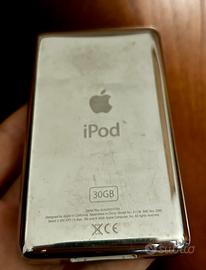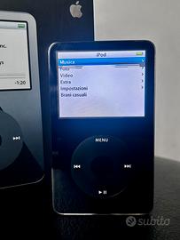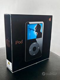 iPod Classic da 30GB Nero, modello A1136 di Quinta Generazione completo di scatola originale e tutti gli accessori inclusi, alcuni ancora sigillati, mancano solo le cuffie.