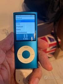 Vendo Apple iPod Nano 4ª generazione originale, colore blu, capacità 8GB. Modello A1285, perfettamente funzionante. Il dispositivo è in ottime condizioni estetiche e funzionali: display acceso, menu funzionante e tasti perfetti, come visibile in foto. Completo di scatola originale Apple. Cavo non incluso.