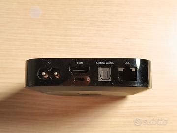 Il dispositivo è in ottime condizioni, è stato utilizzato poche volte e perfettamente funzionante. In aggiunta al dispositivo, viene fornito il cavo di ricarica, il telecomando Apple e un cavo HDMI per il collegamento con il monitor. Il dispositivo è inoltre dotato di un'uscita HDMI, una porta micro-USB, un connettore optical audio e un ingresso Ethernet. Per maggiori informazioni non esitate a scrivermi!