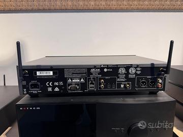 Streamer di rete. Google Cast, AirPlay 2, UPnP Streamer. Roon Ready. MQA. 4 ingressi digitali, 2 coassiali SPDIF e 2 ottici. Uscita ottica e coassiale SPDIF. Uscita sbilanciata RCA e bilanciata XLR. Ingresso USB. DAC Sabre ESS9038K2M a 32bit/192KHz. Wi-Fi e Ethernet. Arcam MusicLife App. RS232. Controllo IP. Display a matrice di punti. Telecomando. Dimensioni (LxAxP) 433x102x306mm. Peso: 5,5Kg.
