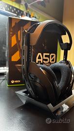 ASTRO Gaming A50 Cuffia Wireless + Stazione Base di Ricarica, 4° Gen, Dolby Audio, Controllo Equilibrio Gioco/Voce, 2.4 GHz Wireless, 15 m di portata per Xbox Series X|S, Xbox One, PC, Nero/Oro