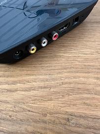 Vendo lettore multimediale ASUS O!Play Mini, ideale per riprodurre film, video, musica e foto direttamente su TV. Dispositivo compatto e facile da usare, perfetto per trasformare qualsiasi televisore in un centro multimediale. Caratteristiche principali: * Riproduzione video in alta definizione (Full HD 1080p) * Supporto a numerosi formati video e audio * Porta USB per collegare chiavette o hard disk esterni * Uscita HDMI per collegamento alla TV * Uscite AV analogiche (RCA) * Design compatto e leggero Condizioni: * Usato, in buone condizioni estetiche (come da foto) * Perfettamente funzionante Incluso nella vendita: * Media player ASUS O!Play Mini * Alimentatore originale * Cavo HDMI * Telecomando