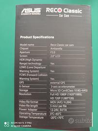 Vendo Asus Reco Classic Videocamera da Auto con GPS, Nero, tenuta maniacalmente in perfette condizioni, confezione originale completa con tutti gli accessori come da foto. Il prezzo è compreso di spedizione in Italia.