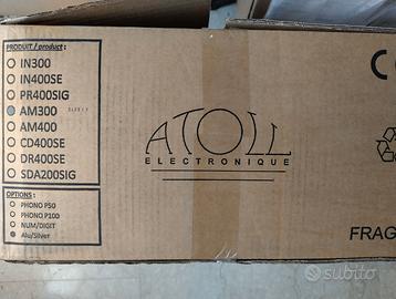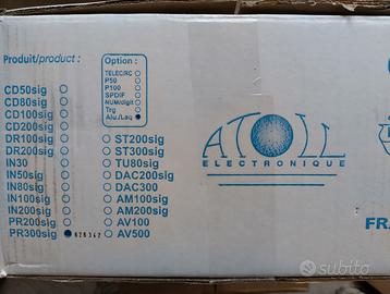 Atoll PR300 Signature + Atoll AM300 Signature (pre e finale), finitura silver nuovi e mai utilizzati (le scatole sono state aperte solo per controllare che ci fosse tutto nella confezione a corredo). Vendo, €3450 la coppia. (La prima immagine è di repertorio).