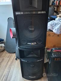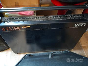 1)Alto AMX-100FX mixer a 10 canali con effetti digitali integrati, usato per: collegare microfoni, strumenti o PC regolare volume, bassi/medi/alti (EQ) aggiungere effetti (riverbero, delay ecc.) mandare il segnale a casse o registrazioni 2 ingressi microfono (XLR) ingressi stereo per tastiere/PC effetti DSP interni (fino a 256 preset) 60 euro 2) Marantz PM 710 DC amplificatore hi-fi degli anni ‘80 (circa 1981–83), usato per pilotare casse audio. Caratteristiche principali: circa 80 watt per canale ingressi per: giradischi (phono) tuner / radio AUX (CD, telefono ecc.) equalizzatore grafico integrato (raro e ricercato) suono caldo tipico Marantz vintage 450 euro 3) amplificatore per strumenti musicali (chitarra, basso o tastiera) anni ‘70/‘80 prodotto da FBT. Caratteristiche tipiche: tecnologia transistor (solid state) → più robusto delle valvole cassa + amplificatore insieme (combo) 250 euro 4)coppia di diffusori acustici (casse passive) della BST, modello Range 30. Si tratta di casse nate per il settore semi-professionale (DJ set, feste, piccoli eventi o piano bar), caratterizzate da una costruzione robusta con rivestimento in moquette e griglia metallica. Marca/Modello: BST Range 30. Potenza: 350 Watts (solitamente indicati come potenza di picco; la potenza RMS reale è probabilmente intorno ai 150-200W). Configurazione: Sistema a 2 vie con woofer (per i bassi) e tweeter a tromba (per gli alti). Tipo: Passive (necessitano di un amplificatore esterno per funzionare). 150 euro 5)mixer audio analogico professionale, per la precisione un LEM MC 16 S. La LEM (Laboratori Elettro-Musicali) era una storica azienda italiana (parte del gruppo Generalmusic) molto apprezzata negli anni '80 e '90 per la robustezza e la qualità sonora dei suoi prodotti, specialmente nel settore del "live" e dei piano bar. Caratteristiche principali Canali: Dispone di 16 canali di ingresso (tutti con ingressi Jack) tutto perfettamente funzionante 180 euro RITIRO A MANO