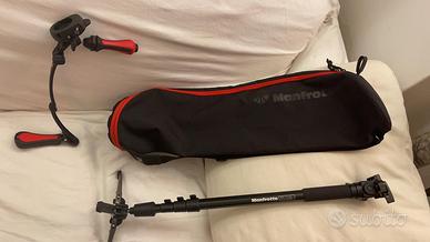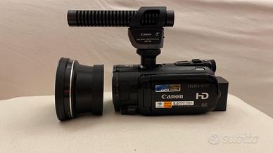 Completo set di attrezzature leggere per riprese video professionali, comprensivo di videocamera CANON LEGRIA HFS11 (1920-1080), 64 GB, zoom 6.4-64mm, 1:1.8, corredata dall'additivo super-grandangolare CANON wide-converter WD-H58, 2 batterie BP-827 (quelle a più lunga durata), con caricabatteria CG-800, telecomando ZR-2000, microfono wireless WM-V1, cavalletto mono-piede MANFROTTO e supporto di stabilizzazione per riprese a mano MANFROTTO, manuale PDF, borse in cordura. Tutto assolutamente nuovo, inusato.