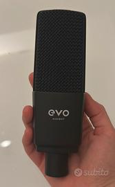 Sistema audio con solo due utilizzi. Oltre alla scheda audio, sono inclusi le cuffie EVO e il microfono da studio. Sono inclusi anche un supporto per microfono EVO, un cavo cannon-to-cannon e un caricabatterie Type-C per la scheda audio.
