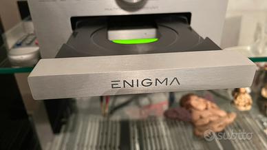 Specifiche tecniche Enigma: Assorbimento 300 w - TUNER: Numero di canali 2 - Rapporto segnale/rumore FM: 60dB min; AM: 40dB min. CD: Numero di canali 2 - Risposta in frequenza (+0/-3dB) 20Hz-20kHz - Rapporto segnale/rumore(20Hz-20kHz) 76dB - AMPLIFICATORE INTEGRATO: >90dB - Numero di canali 2 Rapporto Segnale/Rumore (22Hz-22kHz) 72dB - Alimentazione 230V 50-60Hz oppure 115V 50-60Hz - Potenza di uscita (Carico: 8 Ohm THD + N = 0.1%) 54W - Dimensioni L. 210mm; A. 120mm; P.370mm - Peso 9,5 Kg - Ingressi 2 linea - Uscite REC OUT, collegamenti antenna AM e FM, collegamenti per i diffusori.