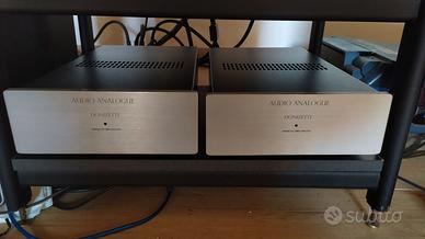 Preamplificatore Audio Analogue Bellini, Remote Control (con telecomando) e coppia di amplificatori finali Audio Analogue Donizetti Monoblock. Tenuto da amatore e perfettamente funzionante. 100% Made in Italy. Primo ed unico proprietario. Possibilità di spedire con imballo e spedizione tracciata. Pagamento con bonifico anticipato oppure in contanti se ritirato direttamente al mio domicilio. Caratteristiche tecniche: Power output: 100W su 8 Ohm e 200W su 4 Ohm. Frequency response: 5Hz to 90kHz Total harmonic distortion: 0.01%