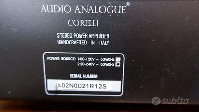 Vendo finale di potenza stereo Audio Analogue Corelli, prodotto Made in Italy di alta qualità, perfetto per chi cerca un suono naturale, dinamico e dettagliato.