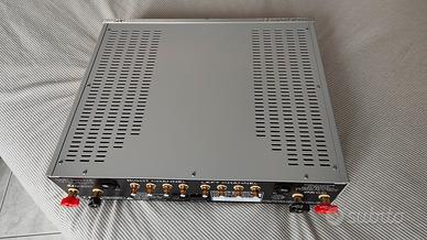 Volume con quattro curve selezionabili in base alla sensibilità dei diffusori. Indicazioni sia del livello di volume, che per l'ingresso selezionato, tramite LED bianchi con luminosità regolabile su due livelli oppure spenti.