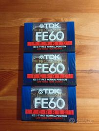 tre audiocassette TDK FE 60 nuove, sigillate in confezione originale