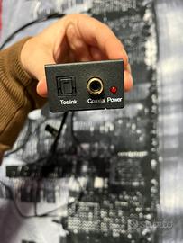 Audio converter e cavo ottico da abbinare a delle cuffie per tv con uscite ottiche. Come nuovo, in perfette condizioni.