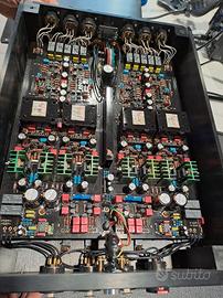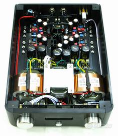 Cedo per passaggio a sistema Stax top di gamma,rarissimo amplificatore per cuffie/preamplificatore con telecomando e alimentazione separata. Si tratta di una delle prime produzioni: il fondatore He Qinghua era reduce dalle collaborazioni come capo progettista in Krell. Macchina allo stato dell’arte,ormai fuori catalogo,causa costi di produzione elevatissimi;non include nessun tipo di DAC,per cui non è soggetta a nessun fenomeno di obsolescenza programmata. Accoppiamento sinergico con le magnetoplanari,lo usavo in bilanciato con le Audeze LCD e Hifiman,ma è ottimo anche con Beyerdynamic,Sennheiser,Denon e Grado. Utilizza la tecnologia esclusiva ACSS (Current Audio Signal Transmission),basata sul modulo BPM-7110 V2 a bassissima distorsione. Suona molto neutro,chiaro e trasparente,palcoscenico ampio e tridimensionale; bassi granitici.scolpiti. Bilanciato vero,dual mono con 2 cavi di alimentazione separati che lo collegano all’alimentatore. Si adatta benissimo a qualsiasi rack o scrivania,a differenza delle ultime produzioni Audio GD stile portaerei.davvero ingestibili,soprattutto come ampli cuffia. Costruito come un carro armato: Il telaio è interamente in lega di alluminio pesante (16 kg!),per evitare che le correnti parassite del trasformatore interferiscano con la scheda del circuito; l'interno è separato in 2 sezioni da pannelli in alluminio per la migliore separazione dei canali. In ottime condizioni,ha dimorato in ambiente non fumatori. Telecomando originale in metallo scavato dal pieno a corredo. Non ronza.