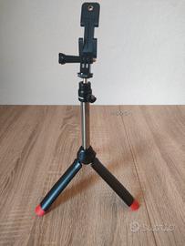 Vendo kit completo per foto, video e dirette social, ideale per TikTok, Instagram o YouTube. Tutto in condizioni eccellenti e perfettamente funzionante. Il set include: Ring Light LED Professionale: Grande anello luminoso con treppiede alto regolabile. Dispone di 3 tonalità di luce (Calda, Naturale, Fredda) e intensità regolabile tramite controller USB. Include supporto flessibile per smartphone. Si alimenta con una comune porta USB (caricatore del telefono, PC o powerbank) Selfie Stick Treppiede 2-in-1: Bastone allungabile che si trasforma in treppiede da tavolo/terra. Molto compatto e leggero, perfetto da portare in viaggio. Telecomando Bluetooth: Per scattare foto o far partire video a distanza (compatibile con iOS e Android). Mini Treppiede aggiuntivo: Con piedini antiscivolo rossi per una stabilità extra su superfici piane.