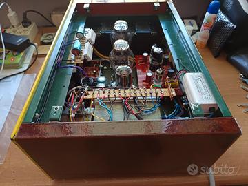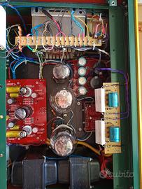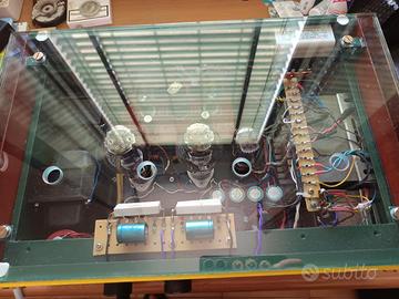 vendo amplificatore Audio Note kit One , le schede sono originali, condensatori di segnale carta e olio Jensen, resistente Takman al carbone 2% di tolleranza, regolazione hum , 2 potenziometri a resistori per controllo segnale di ingresso oppure puo funzionare come integrato ma per me suona meglio come finale con un pre, 9 W per canale cavo di alimentazione fisso Supra , copertura in vetro temperato , ventolina per raffreddamento.