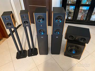 Sistema di diffusori composto da una coppia di diffusori frontali da pavimento, una coppia di diffusori posteriori, un canale centrale e un subwoofer.
