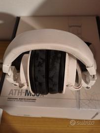 Vendo M50x usate ma perfettamente funzionanti, compresa scatola, 3 cavi, adattatore e sacca.Sono stati sostituiti sia i pad che copri arco con dei Wicked Cushion colore Black cammo(solo questi del valore di 45€).Sostituito da poco anche l'archetto in colore bianco della Soulwit.